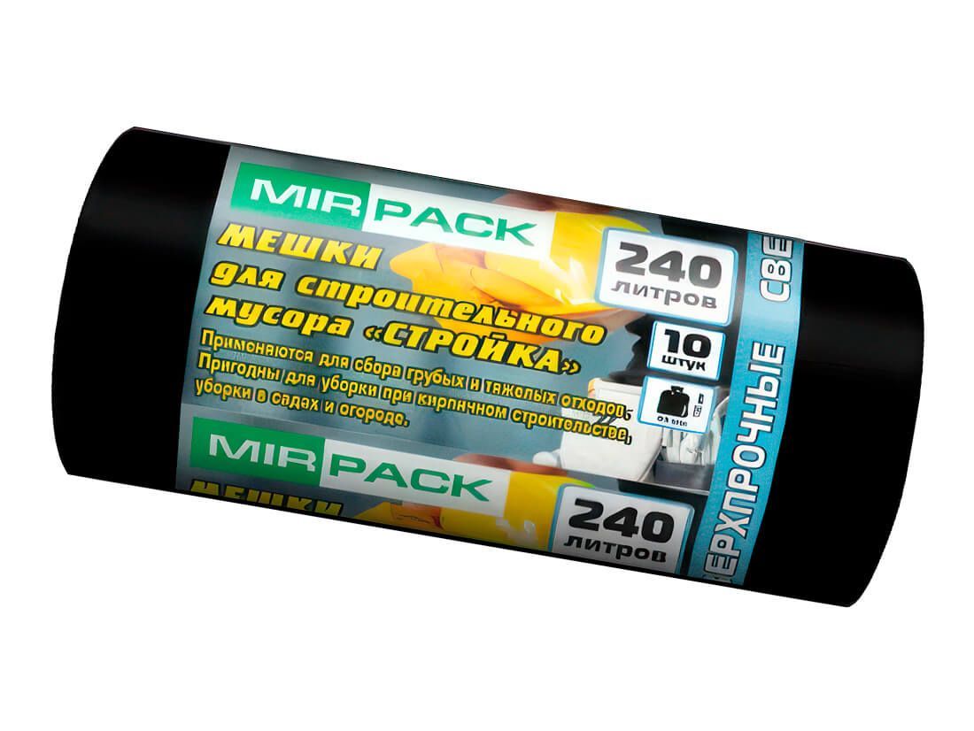 Мешки для мусора 240 л, ароматизированные, черные, в рулоне 10 шт., ПВД 70 мкм, 1300х930 мм, СТРОЙКА, S24010130