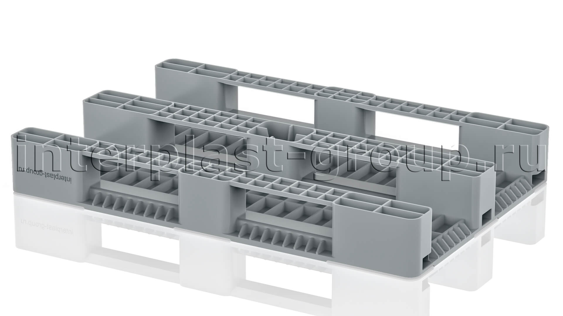 Многофункциональный поддон, производимый по технологии литья под высоким давлением с включением вспенивающего реагента. Разработан для хранения и перевозки тяжелых грузов.