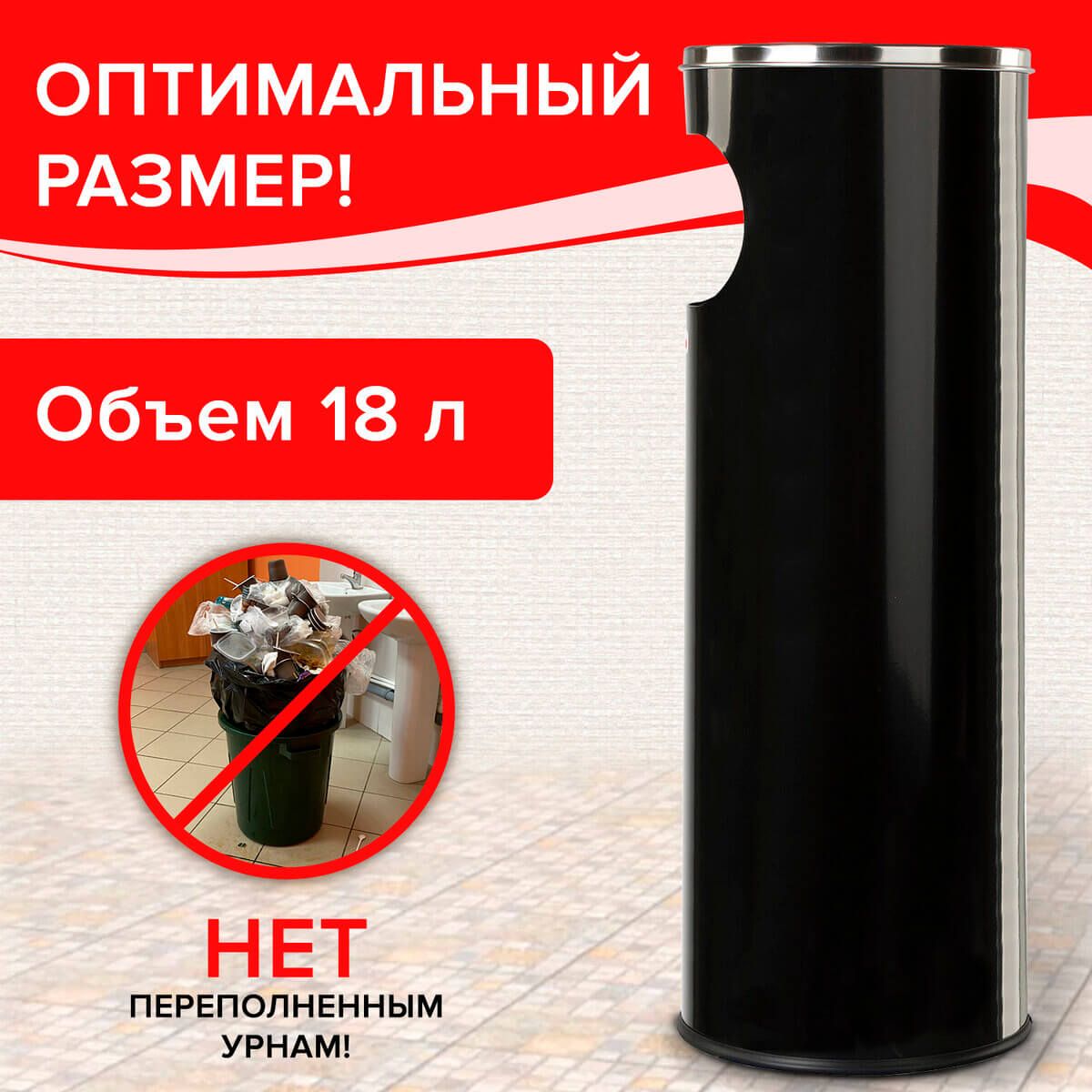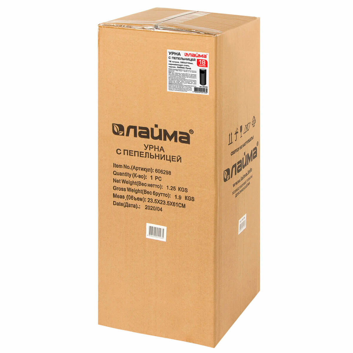 Урна с пепельницей 18 литров, нержавеющая сталь, черная, LAIMA PROFESSIONAL во Владикавказе
